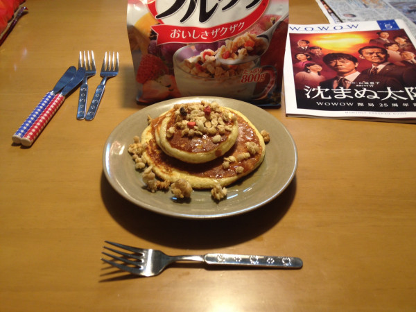 デザートが出てくる場面で、パンケーキがすんごく美味しそうに見え、一緒に見てた大臣や殿も「うーわ!スッゲー美味そう!」と唸った。