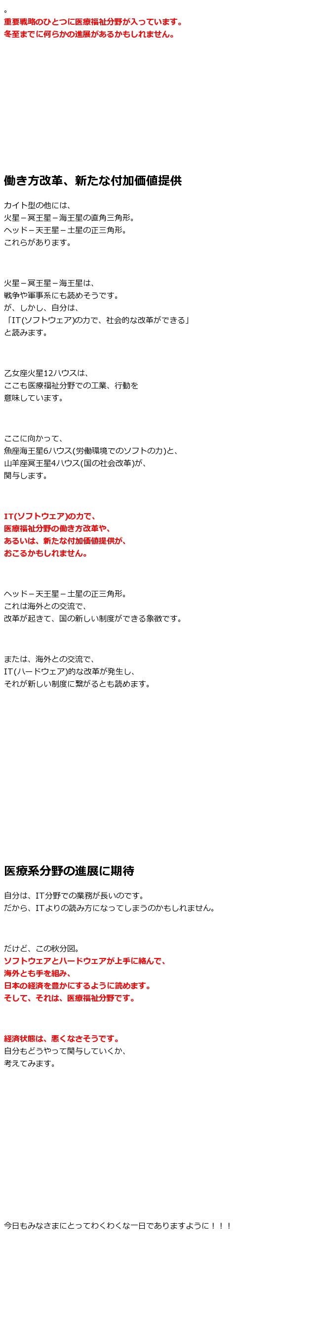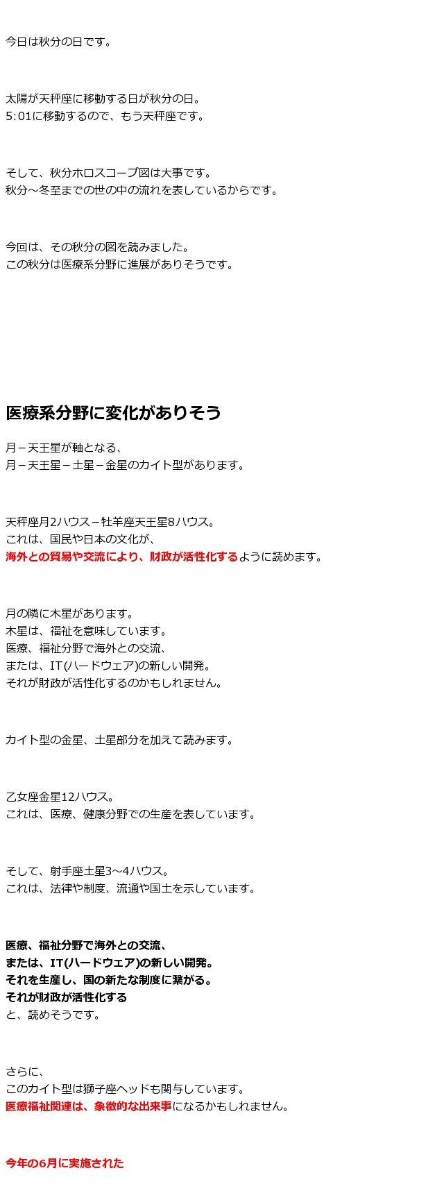 今日は秋分の日、秋分の星読み-医療系分野に進展か?-