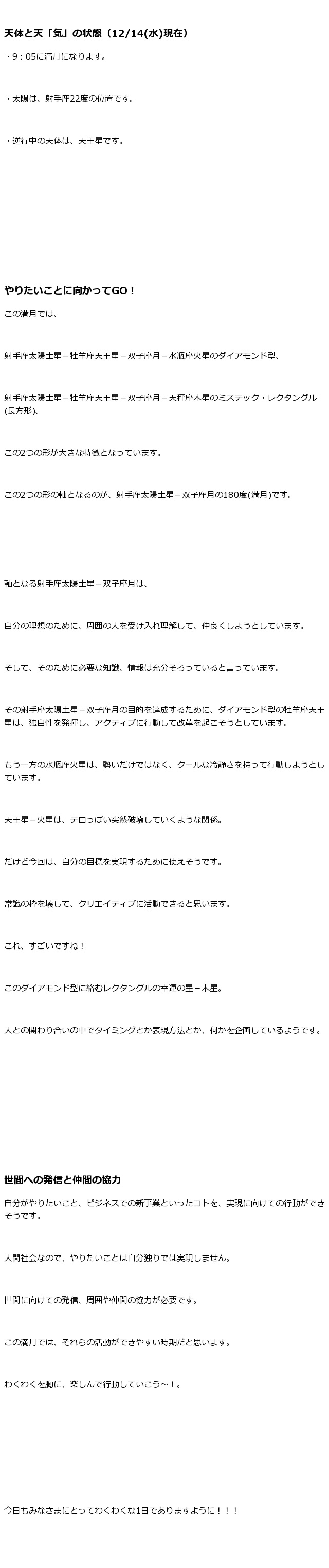 ちょっと未来の星読み-2016年12月14日(水)満月-