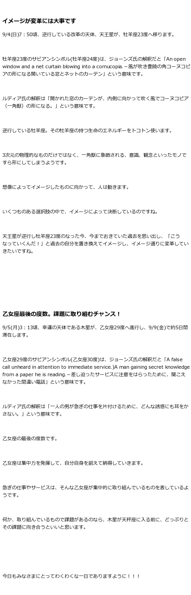 天王星が牡羊座23度へ、木星が乙女座最後の度数29度へ | たろむーん
