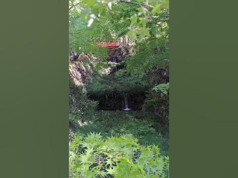 境内には池が有って、滝の音と、水面に反射する光に癒されます。
