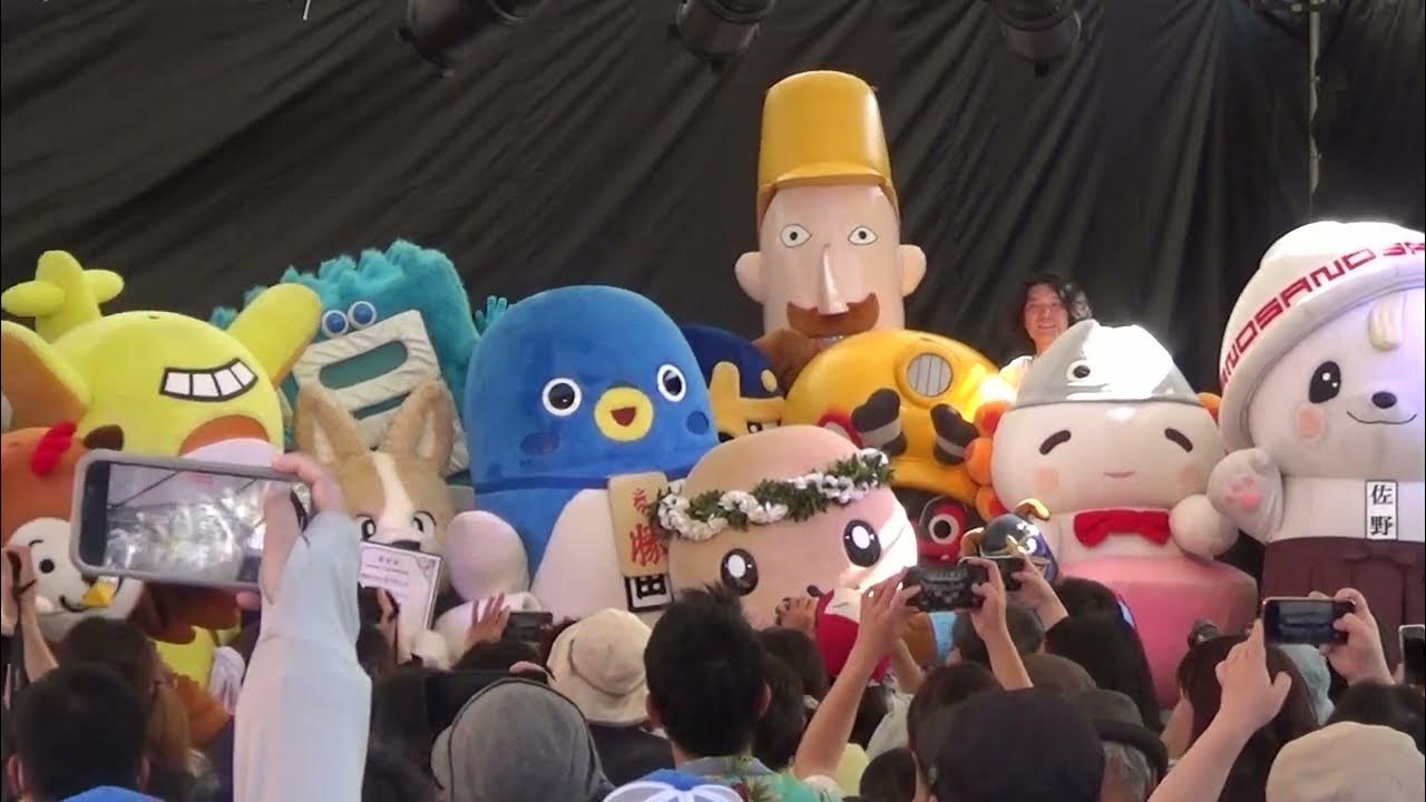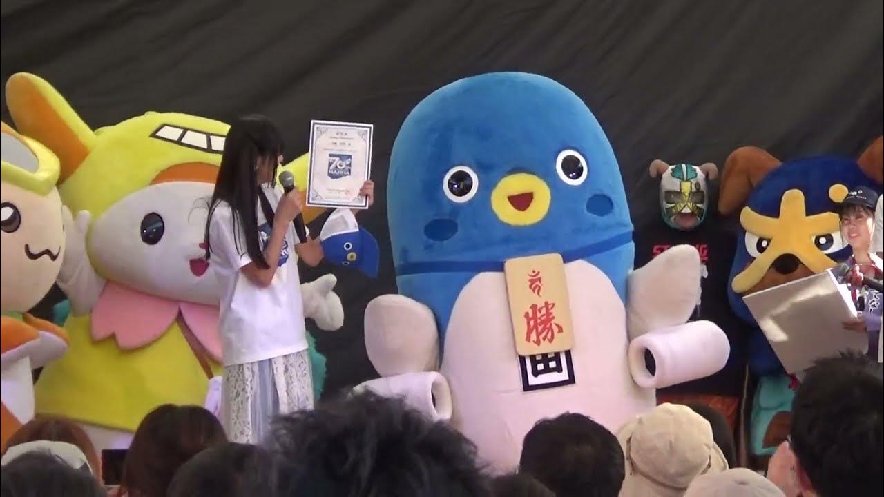 同時開催の「成田伝統芸能祭」の新勝寺総門前会場でエンディング。ご当地キャラ成田詣でキャラクターがこのステージに上がるのは初です。
