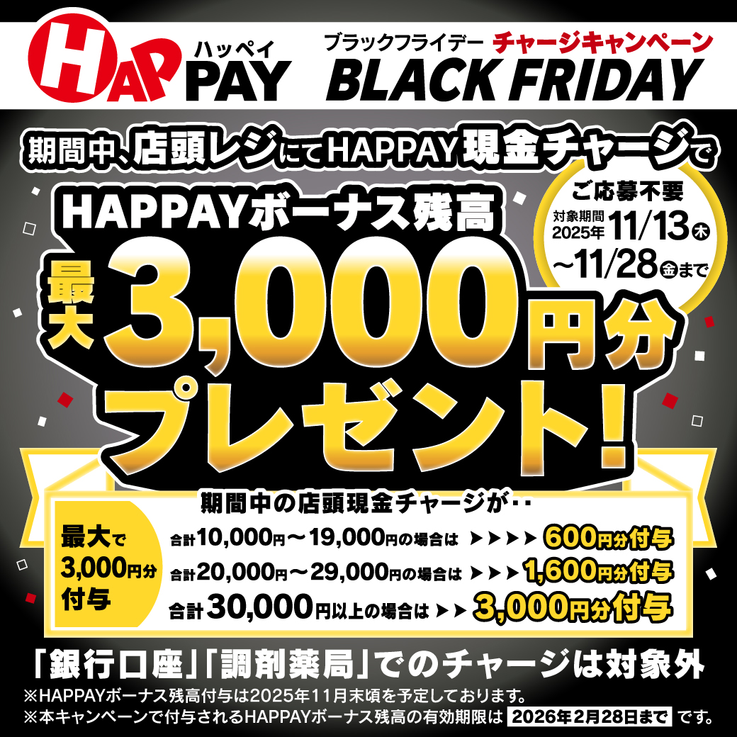 〈HAPPAYボーナス残高 最大3,000円分プレゼント!〉