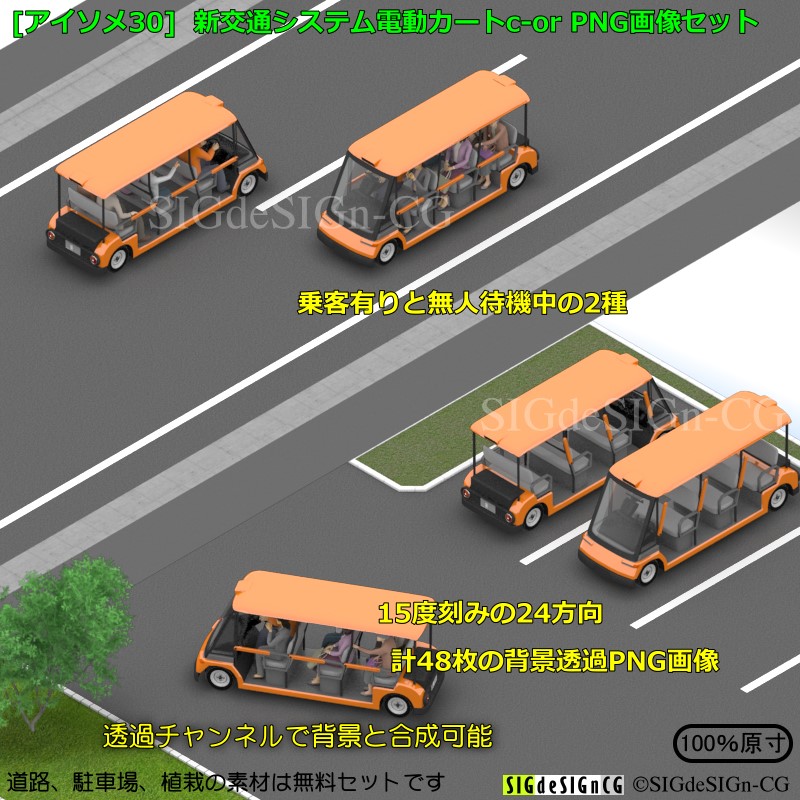 アイソメ 新交通システム 6人乗り電動カート 次世代交通 スローモビリティー イラスト 素材画像