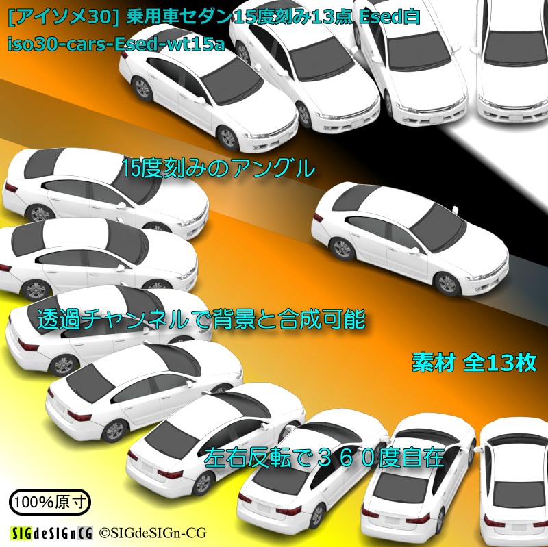 アイソメ イラスト 乗用車セダン15度刻み PNG背景透過画像 素材画像