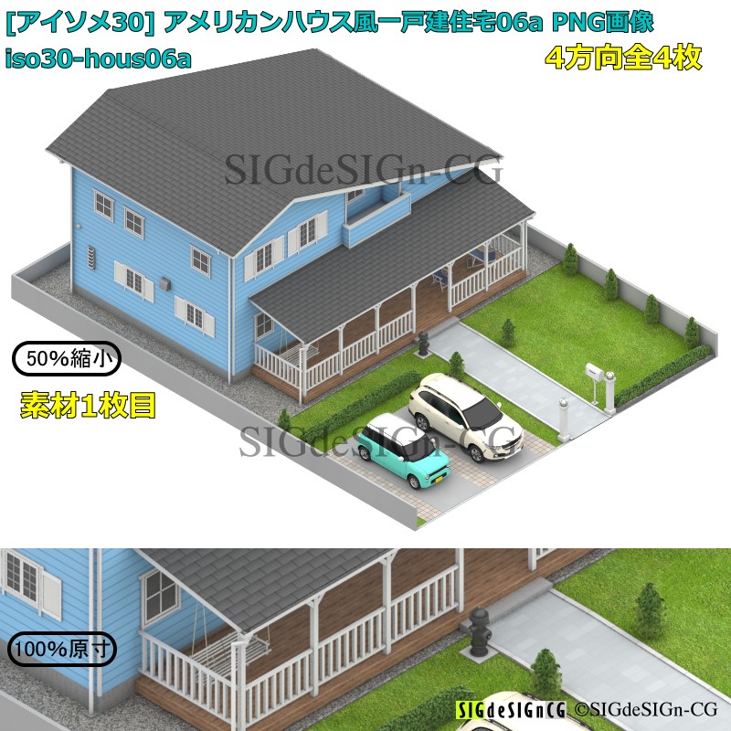 アイソメ イラスト 素材画像 アメリカンハウス 一戸建住宅 PNG 建築 俯瞰