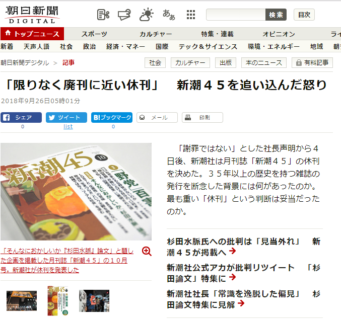 「謝罪ではない」としていた21日の社長声明から、一転して休刊に追い込まれた背景には、新潮45に対する世論の怒りが収まらなかったことがある。