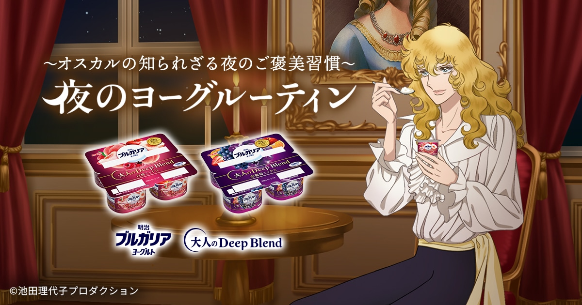 ~オスカルの知られざる夜のご褒美習慣~ 夜のヨーグルーティン | 明治ブルガリアヨーグルト | 株式会社 明治 ‐ Meiji Co., Ltd.『ベルサイユのばら』とコラボした「オスカル夜のヨーグルーティンキャンペーン」を実施中。明治ブルガリアヨーグルト「大人のDeep Blend」で、ささやかな夜のご褒美習慣をお楽しみください。www.meijibulgariayogurt.com