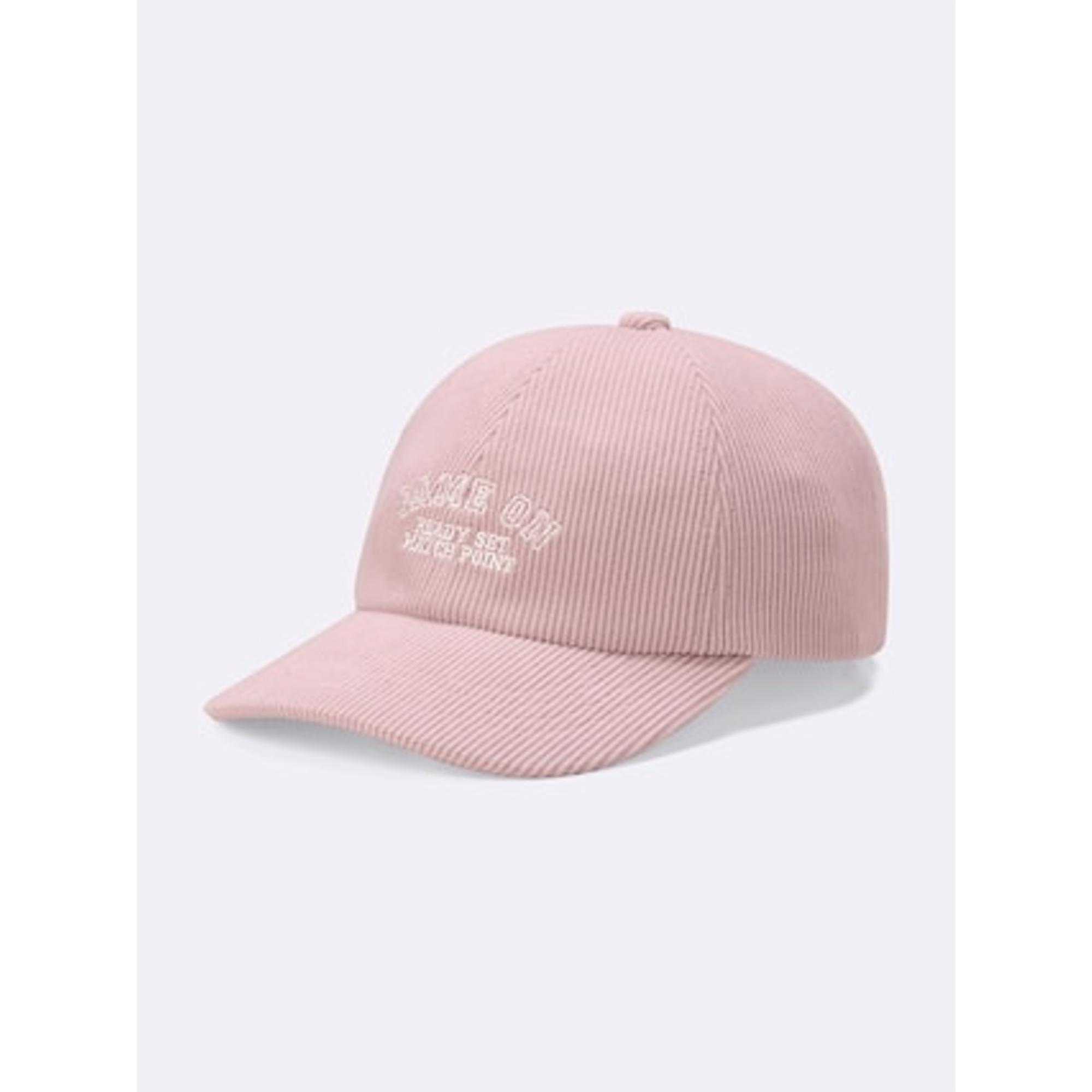 ベージュのキャップを被っているので、