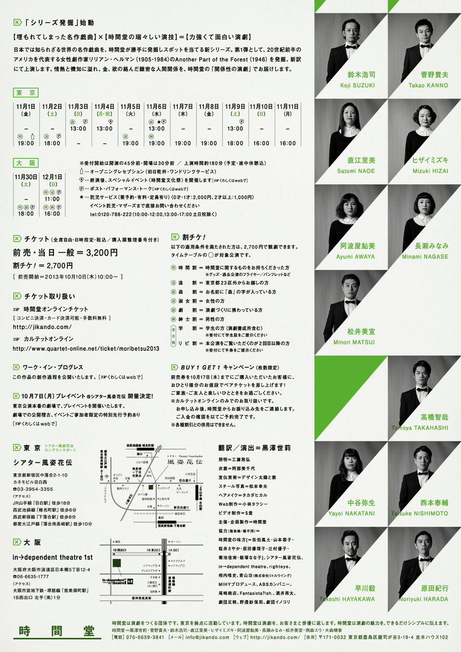【時間堂=黒澤世莉・菅野貴夫・鈴木浩司・直江里美・ヒザイミズキ・阿波屋鮎美・長瀬みなみ・松井美宣・雨森スウ・大森晴香】