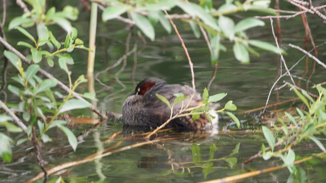 カイツブリ親子、子供をおんぶしている光景がほっこりする