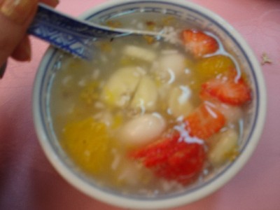 有香蕉,橙同士多啤梨既酒釀丸子