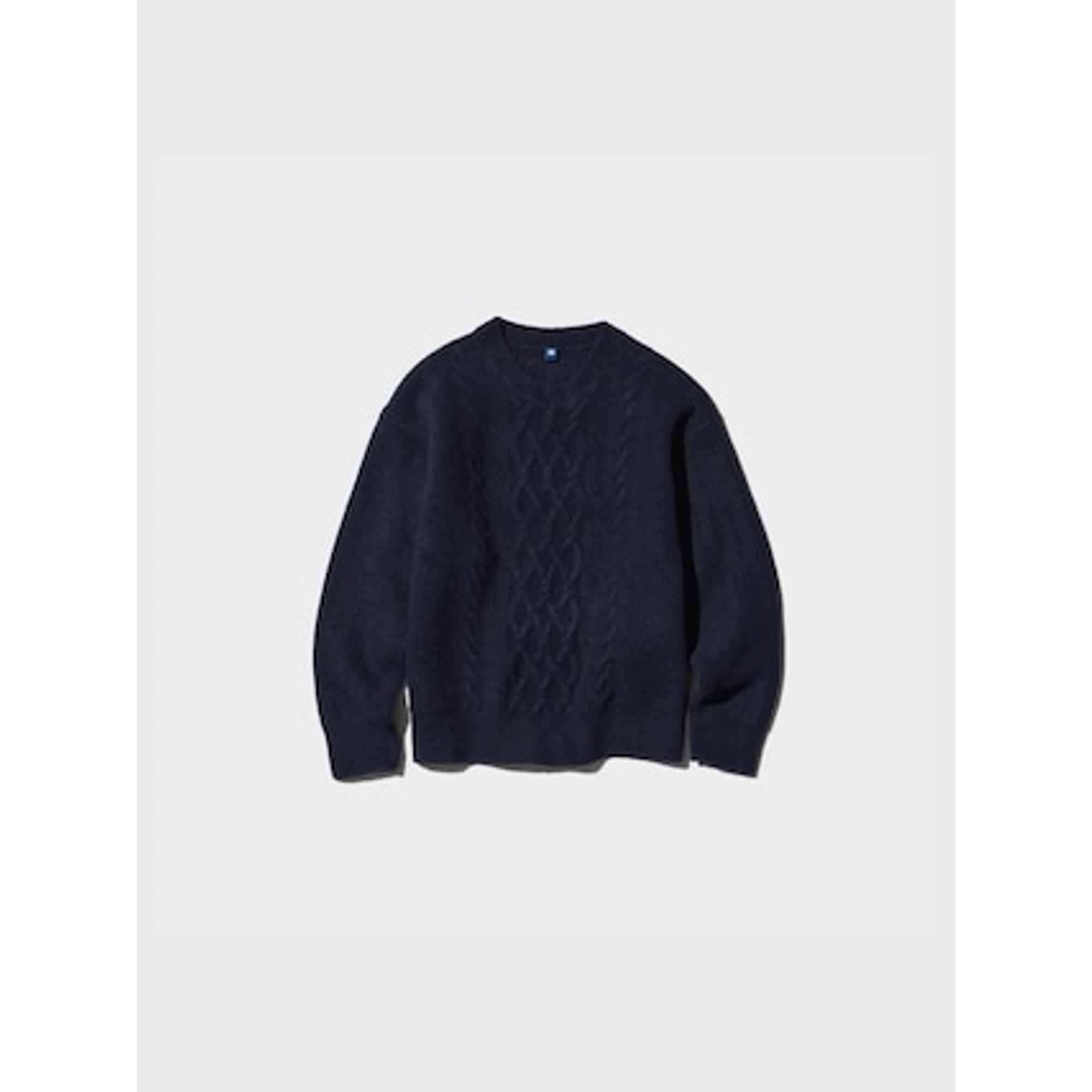 スフレヤーンニットはカーディガン以外もあり、無地とケーブルセーターがあります。