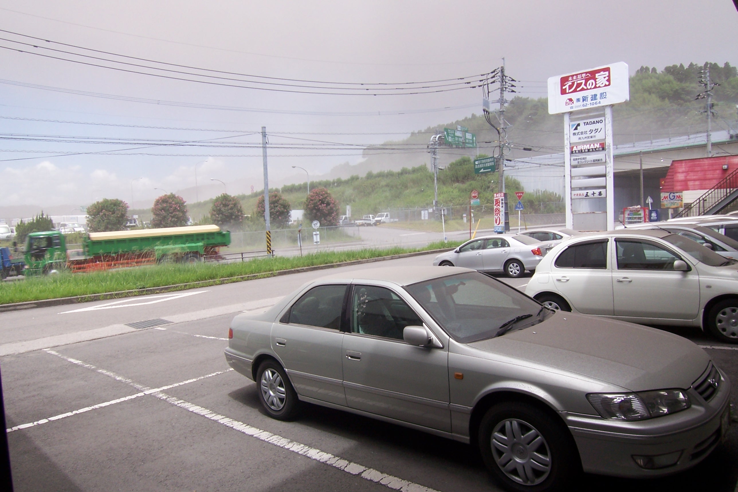 季節風の関係で「冬」にはこちらの地域に影響はありませんが、「夏」はこちらに風が吹きますので、噴火するとすぐに降り出します。
