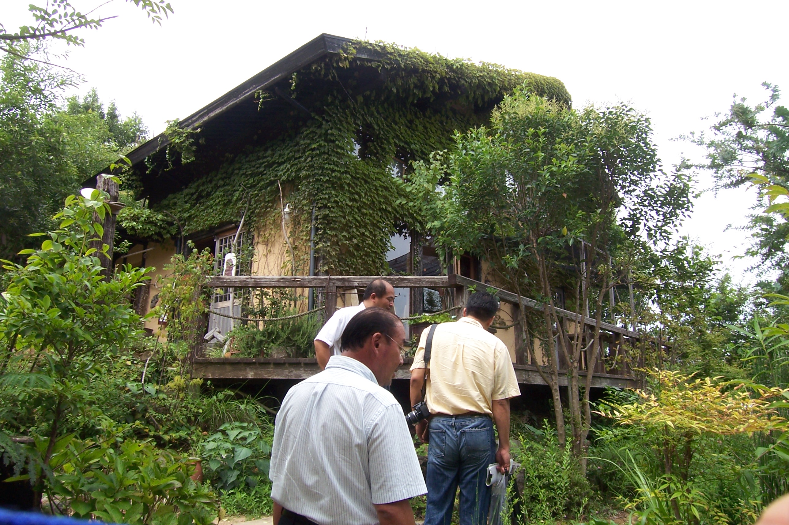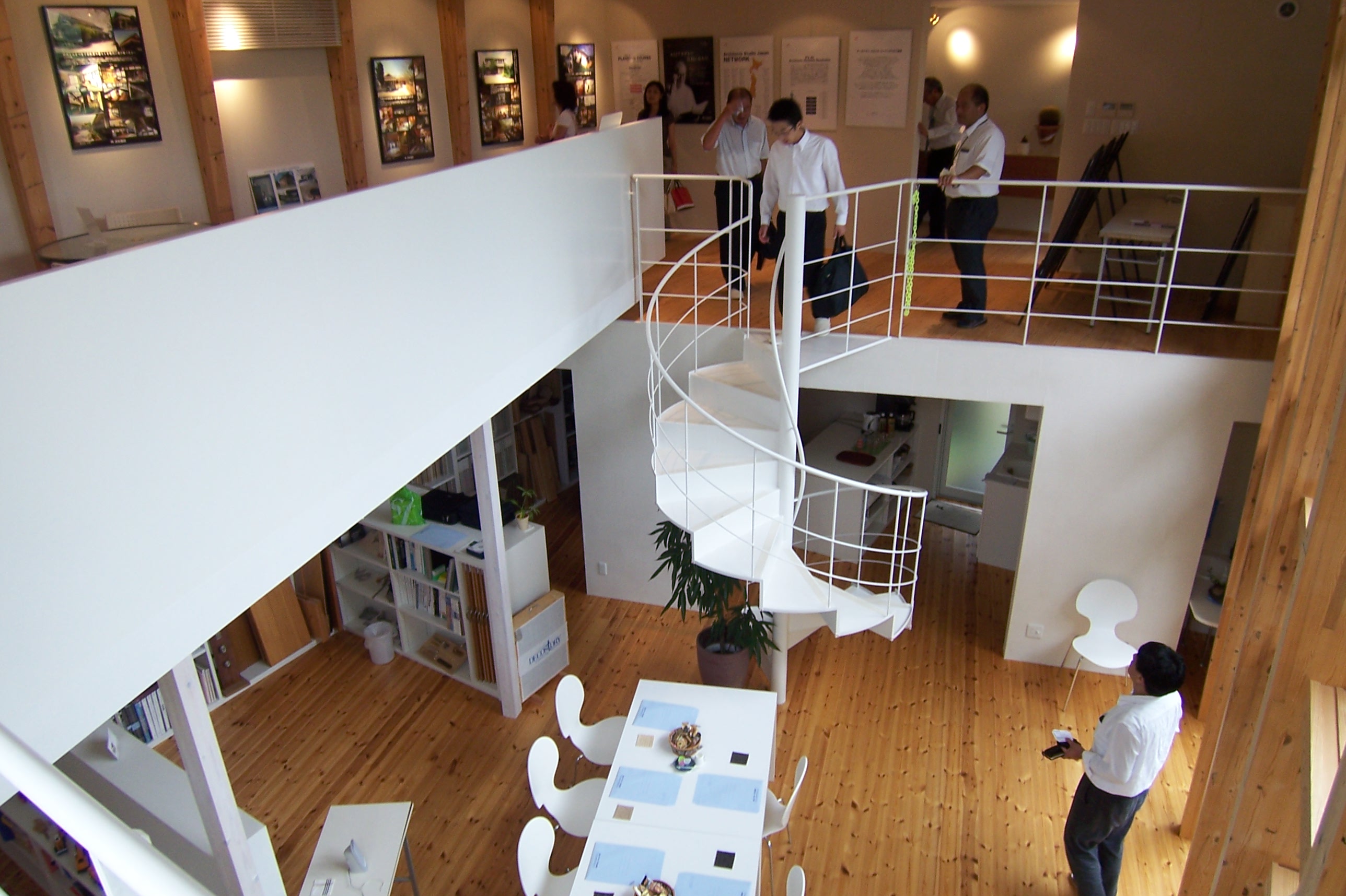 風の森に行ってきました-2浜松建設さん↑お世話になりました。やっぱりと言うか「リクエスト」が来ました。「風の森」と「風びより」です。画像だけでは難しいですが・・・・これが会社の社屋です。敷地内にテナントがあります。このような建物が12箇所。カフェです。ガウディーの世界ですね。中はこんな感じ。適度の狭さが良いのでしょうか??なんと、4層構造です。子供が喜びそう!!内に閉じた空間。打ち合わせ用の建物。低さが良いです。古い木って落ち着きますね。風びよりのカフェに座ってみました。この雰囲気って??社長室にあった階段。恐るべし!!恐怖の電話男も一緒だった事を、皆様にご報告申し上げます(爆)