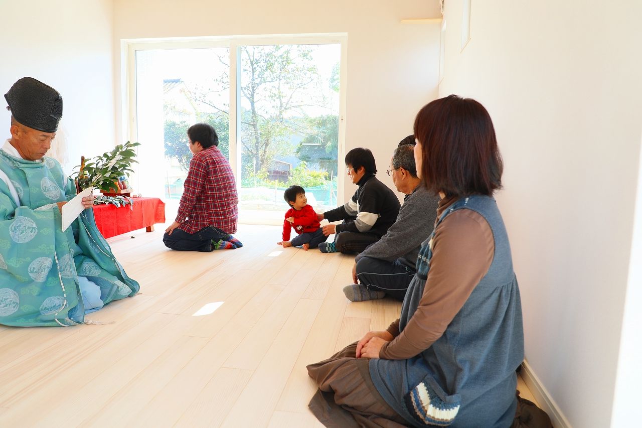 地鎮祭は工事の始まりの報告と安全で無事故での完成を祈願するお祭りです。完成後に無事故の完成を報告する事とお礼をしてこれからの家族の健康と繁栄を祈願するのが竣工祭です。