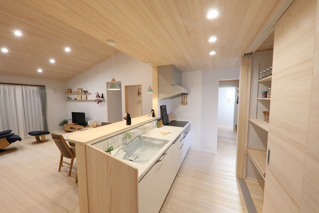 もみの木ハウスの場合は内装材は「もみの木」だけなので家具も「もみの木」で作る事で勝手にコーディネートされていきます。