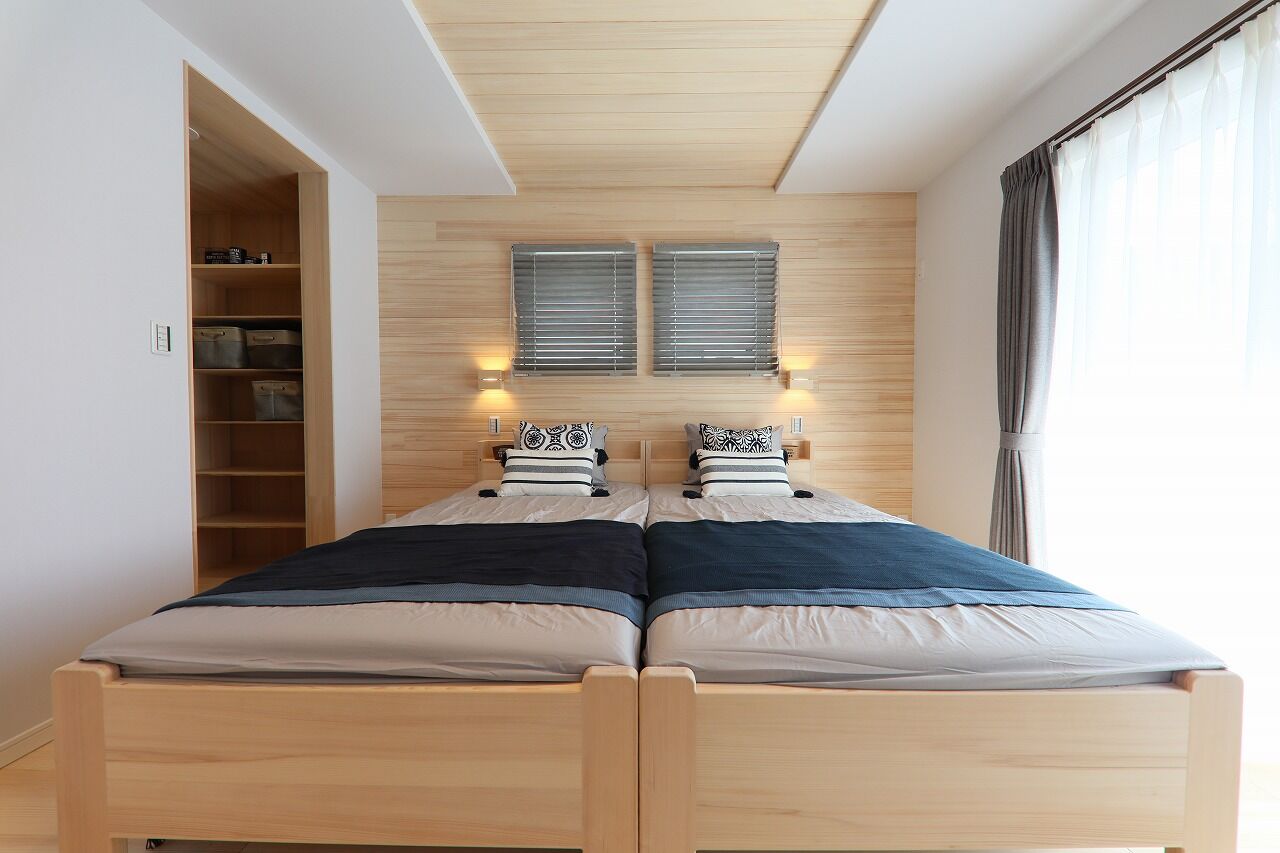 夫婦寝室の広さは寝方で変わります。ベッドであれば8帖は欲しいです。ベッドを置いた足元に余裕があるのが8帖になります。