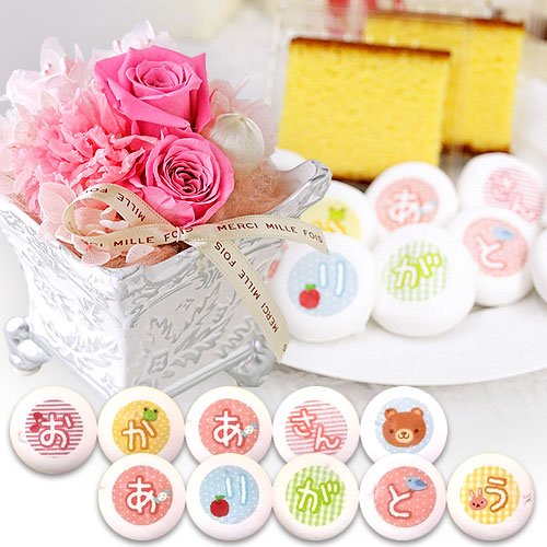 魔法のお花・母の日メッセージ入りマシュマロ・長崎蜂蜜カステラ」