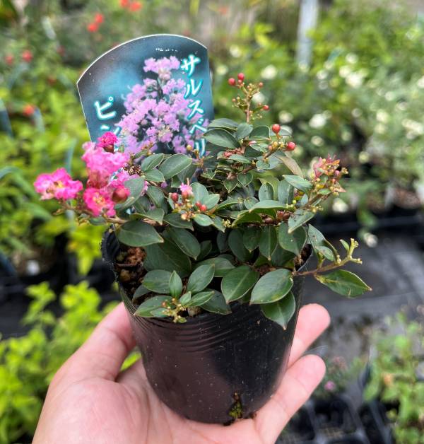 矮性サルスベリの苗木 品種:With Love・ガール 5号ポット 1個売り【品種で選べる花木苗】学名:Lagerstroemia indica With love 'Girl'/ミソハギ科サルスベリ属 耐寒性落葉小高木/別名:百日紅(ヒャクジツコウ)/原産地:ヨーロッパ●「ウィズ ラブ」シリーズは、ヨーロッパで生まれた新しいサルスベリです。そのなかでも本種「ガール」は、明るいピンク色の花色が魅力的な、評価の高い品種です。開花期が長く、コンパクトな樹形が特徴で、寄植えや鉢植えでも楽しめる点が大きな魅力です。耐寒性、耐暑性にすぐれ、育てやすいので、初心者の方にもピッタリです。夏から秋のあいだ繰り返し開花し、成熟が早いため、樹がちいさいうちから開花が期待できます。【※出荷タイミングにより、苗の大きさは多少大きくなったり小さくなったりしますが、生育に問題が無い苗を選んで出荷します。植物ですので多少の葉傷み等がある場合もございます】