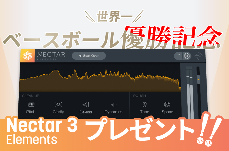 日本野球世界一記念!Nectar 3 Elementsを無料配布します! - iZotope Japan おめでとう日本! 日本野球世界一を記念し、あの感動と声援を磨くボーカル/音声ミックスアシスタント搭載のiZotope Nectar 3 Elements (1万5千円相当)を3日間限定で無償配布いたします!...www.izotope.jp