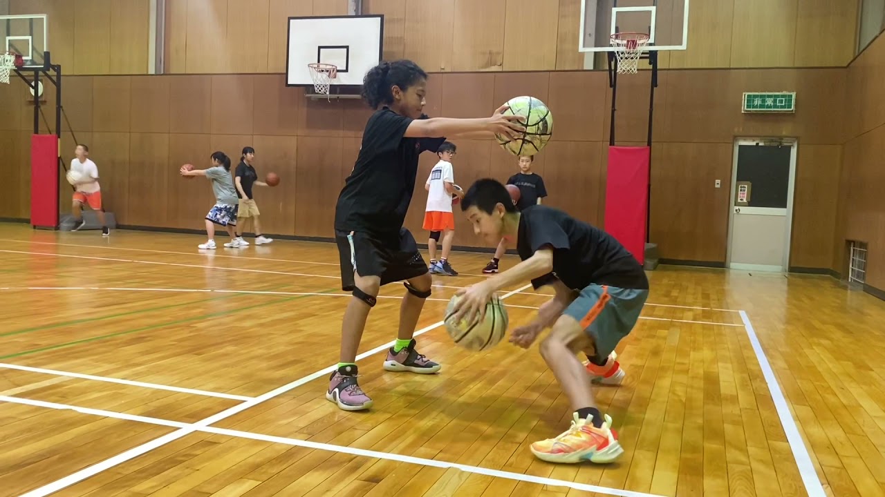 ・ドリブルくぐりインサイドアウト縦腕だし10回ずつ