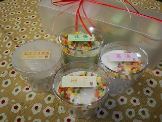 普通の葛湯、抹茶、紅ふうき生姜、柚子の4種類、ケース入り1400円。