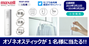 除菌消臭器「オゾネオスティック」を抽選で1名様にプレゼント■ 応募サイト:マクセル ■ 締切日:2019年03月28日 ■ 抽選で1名様 除菌消臭器「オゾネオスティック」を抽選で1名様にプレゼントいたします。 続きは https://wp.me/p6AS5P-iGT