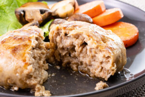 石垣島のパイナップルを食べて育った希少なアグー豚「南ぬ豚(ぱいぬぶた)」を使った「網脂ハンバーグ」です。「南ぬ豚」は、ジューシーなのにヘルシーな脂身を持ち、やわらかい肉質で甘みがあるのが特長。