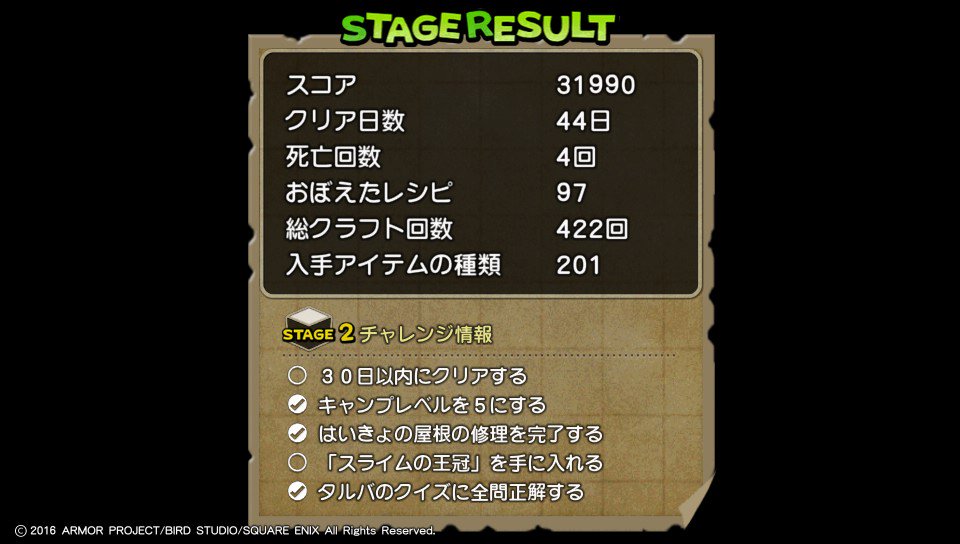 ステージリザルトはこんな感じ!!今回はいくつかチャレンジをクリアできた!!