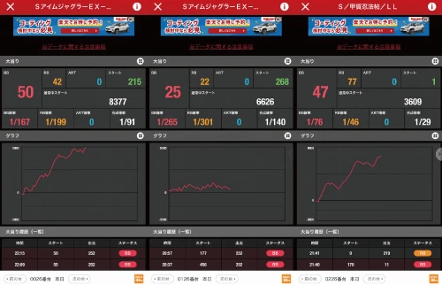 本日のアンケートでも「全ての列に⑤⑥が1台以上」の項目はあるためまずは小台数の島から狙うのがおすすめ。