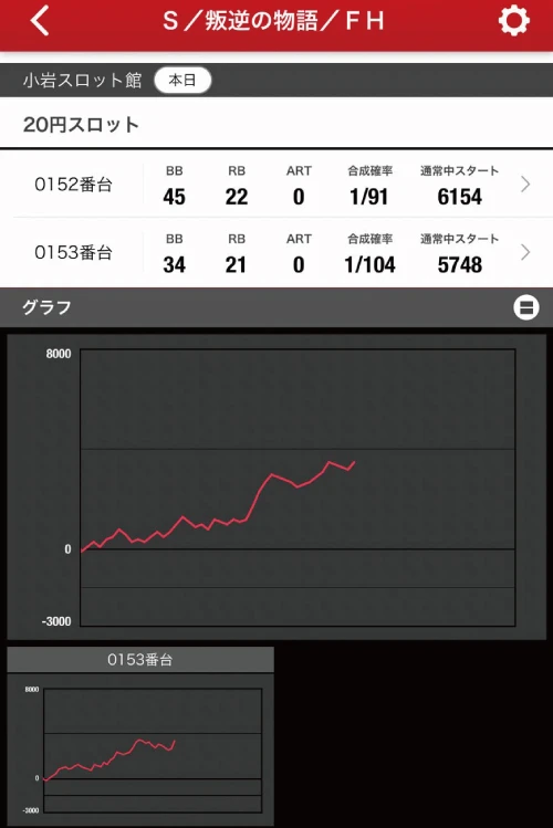 4台以上の機種から「カバネリ」が全台系!全台プラスで平均3,486枚、RBの回数とグラフ的にも全⑥だろう。
