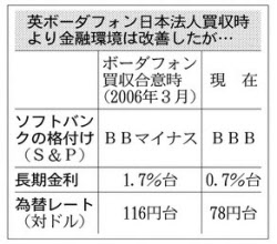 2006年にボーダーフォンを買収したときは、【BB-】 今は【BBB】 ・・・下がってる。