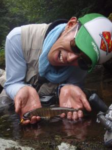 本山氏があっさりと岩魚をヒット!!