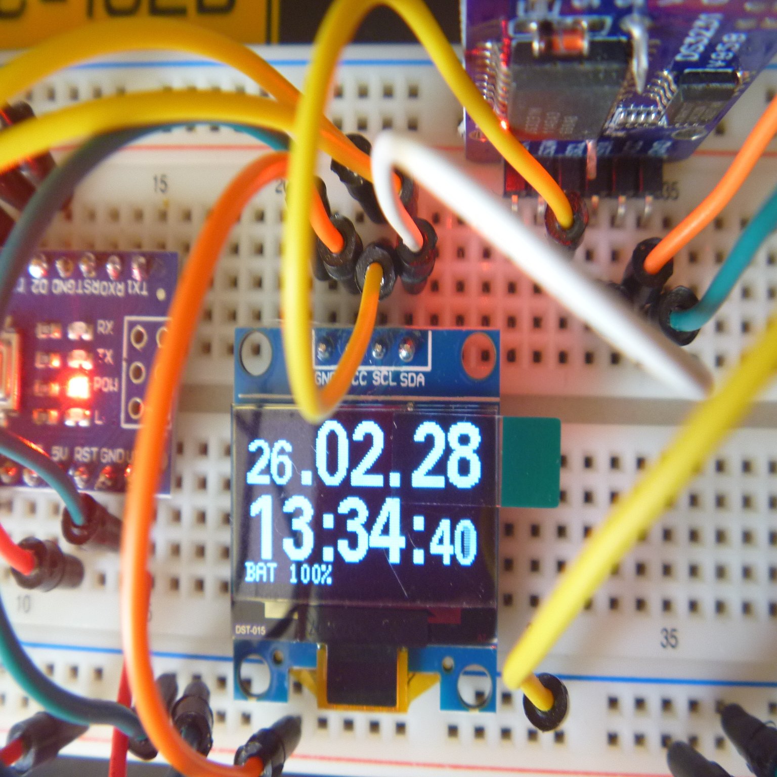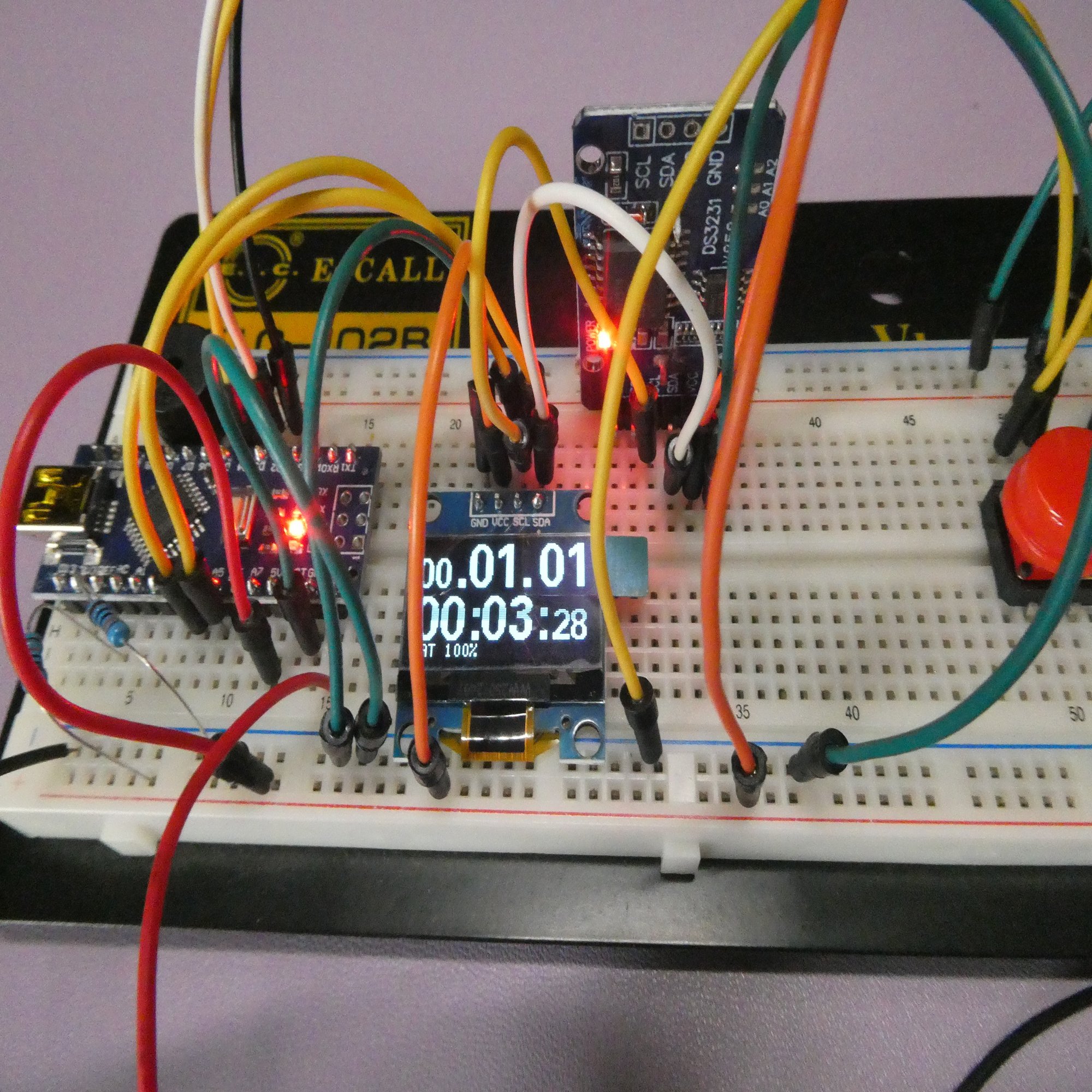 電源を入れて、年月日と時刻をセットして動かすだけです。バッテリーが切れてもRTCモジュールの電池で時刻データが保存されているので、バッテリーを交換するだけで使えるようにしました。