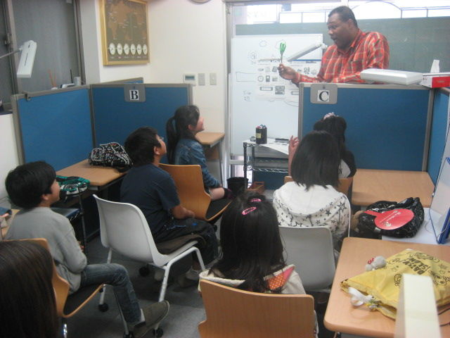 今日、小学生英語教室では大人気のスティーブン先生の授業がありました。
