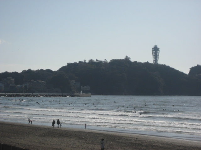 (江ノ島の眺め)(サーフィン人口多いのにびっくり)