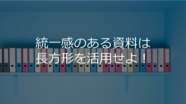 統一感のある資料は、聞き手にとって重要です。何が重要なのかというと、統一感があることで聞き手は聞く準備ができ内容が理解しやすくなります。反対に統一感がないと、何が言いたいのかが伝わりにくくなるといったデメリットがあります。今回は簡単に統一感を出すためのテクニックとして、長方形(図形)を活用して、誰でも出来る統一感を演出する方法について話します。