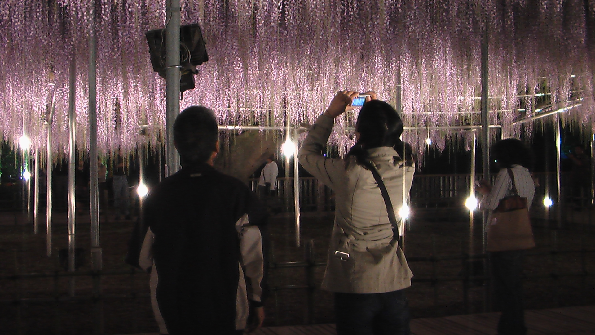 でも、夜のフラワーパーク内はライトアップされて藤の花が幻想的に空間を演出します。