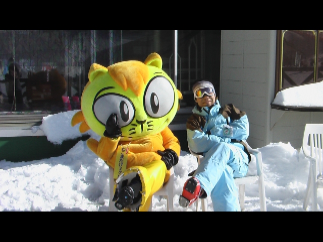 気分も良いので スキー場のキャラクター君と記念撮影しちゃいましたよ。