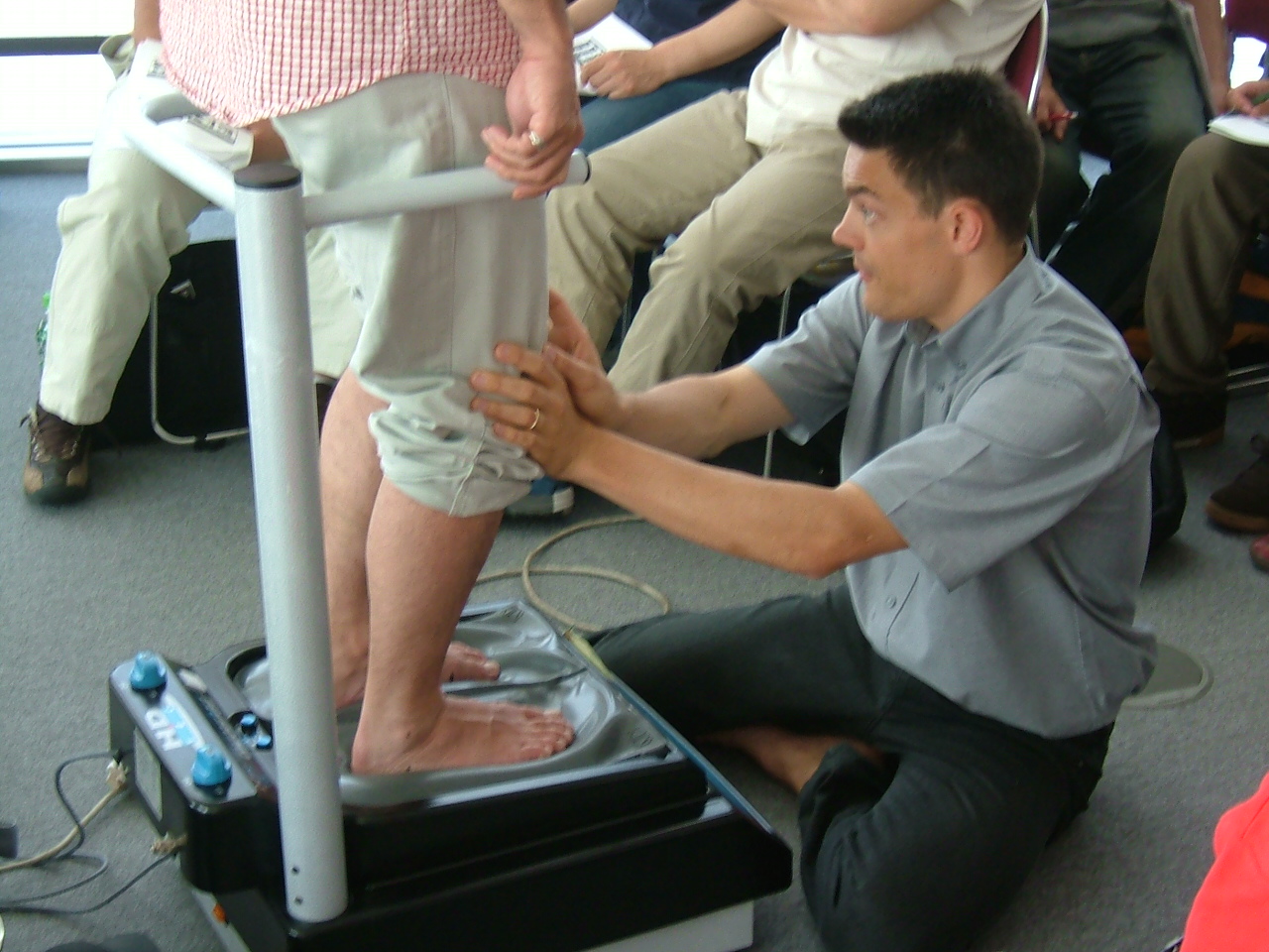 その際、通常は立って頂くのですが、足のコンディションや使用目的によっては座って頂いたまま、インソールを踏んで成型することもあります。