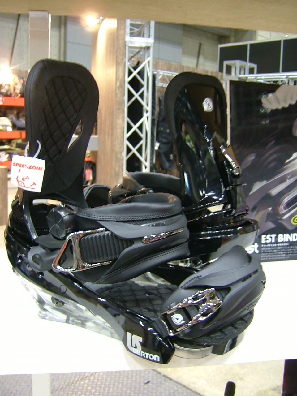 会場に入るとエリアに別れてウェアやボード、ブーツ、ビンディング、etc、が展示されていました。