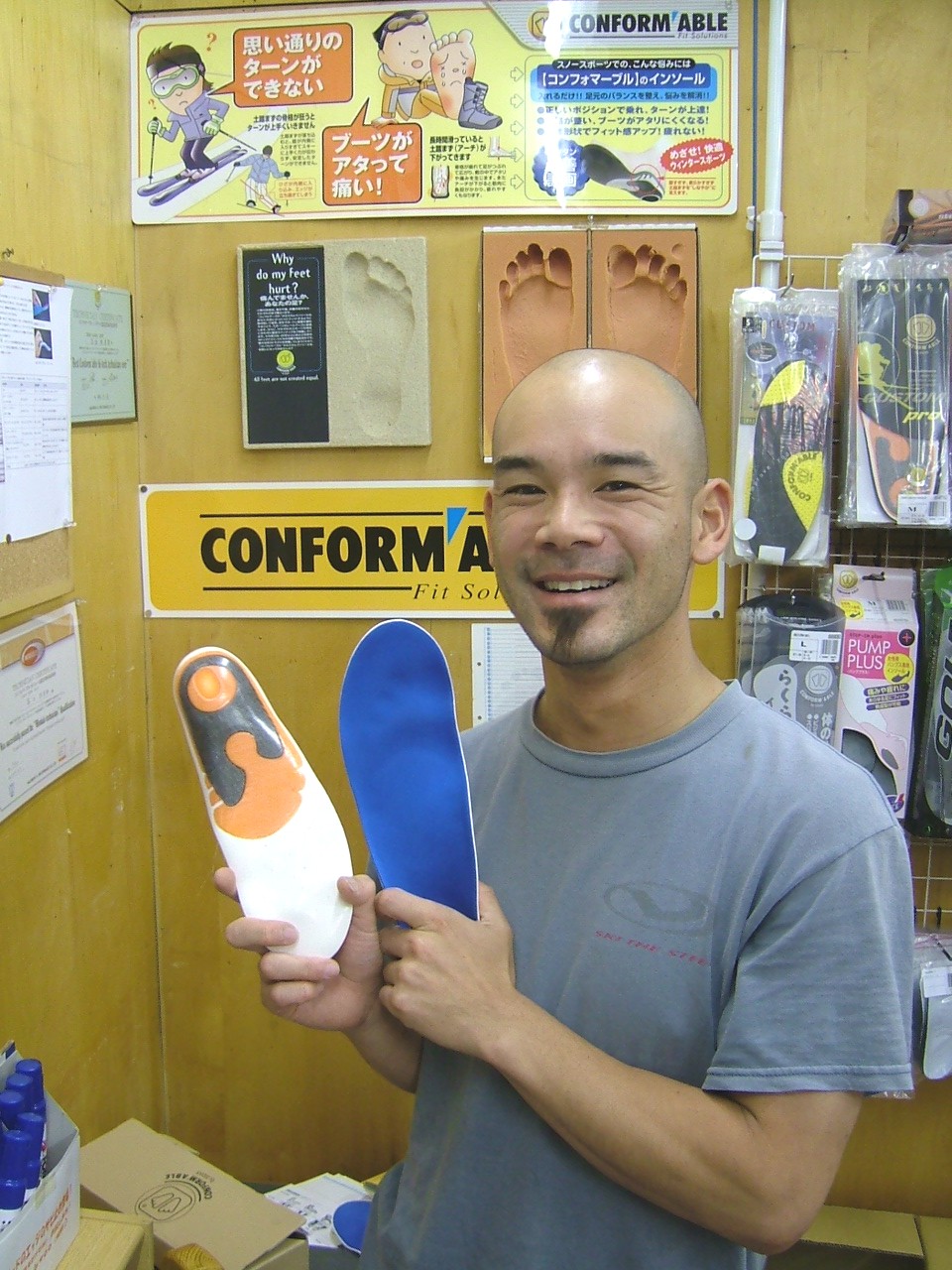 彼は足裏の親指から小指結ぶ横アーチのフィッティングにこだわりがあるのですよね。そして彼がインソールに求めるモノは快適性です。
