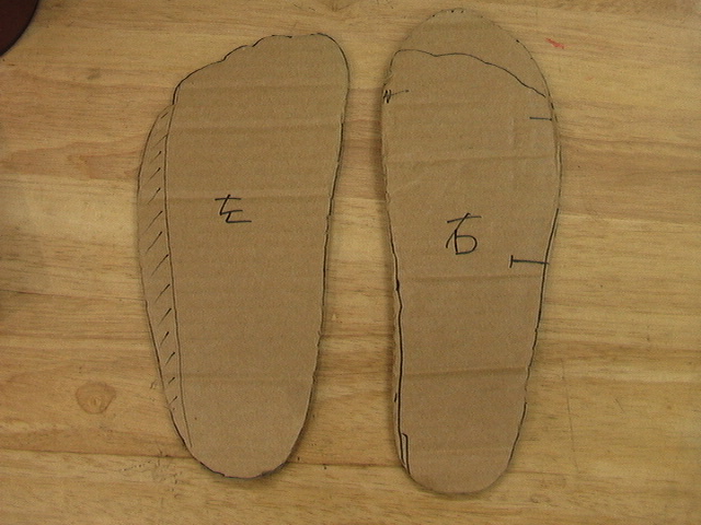 左の足型をこのスペースを広げて行き 収められるように加工して行きます