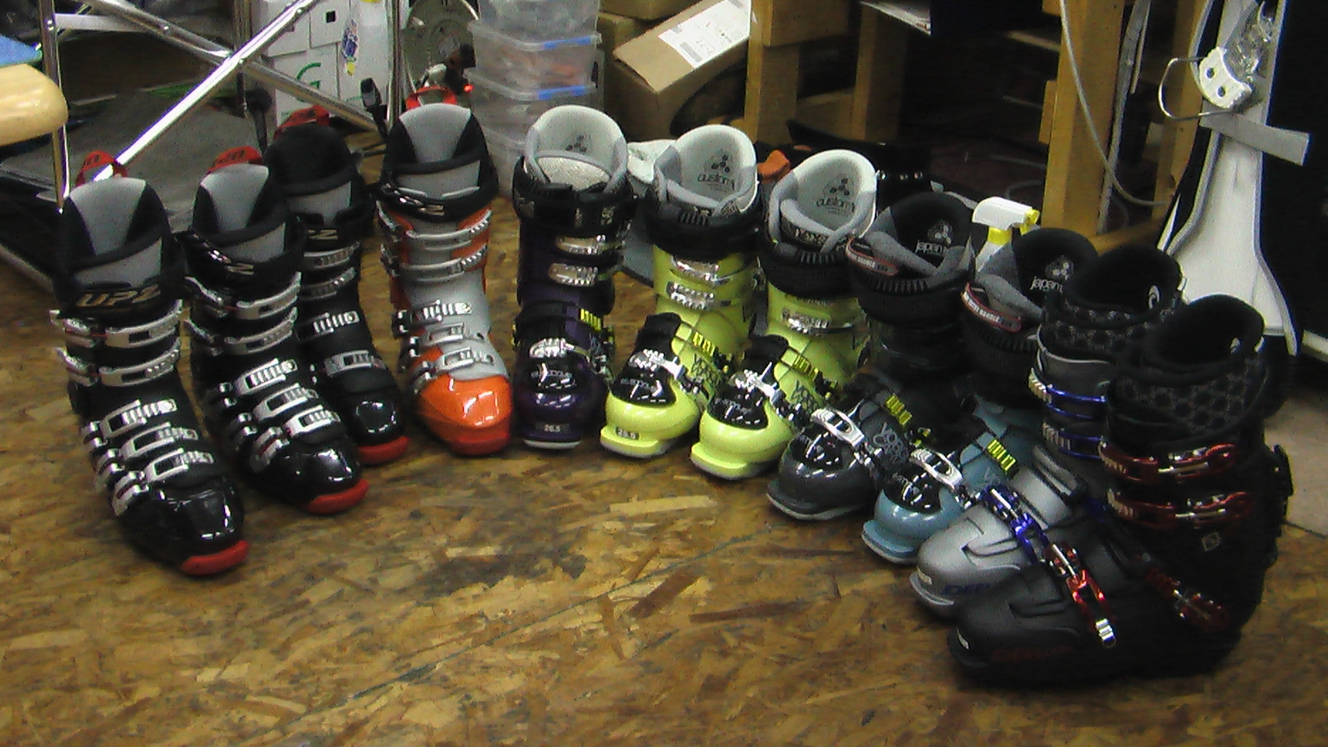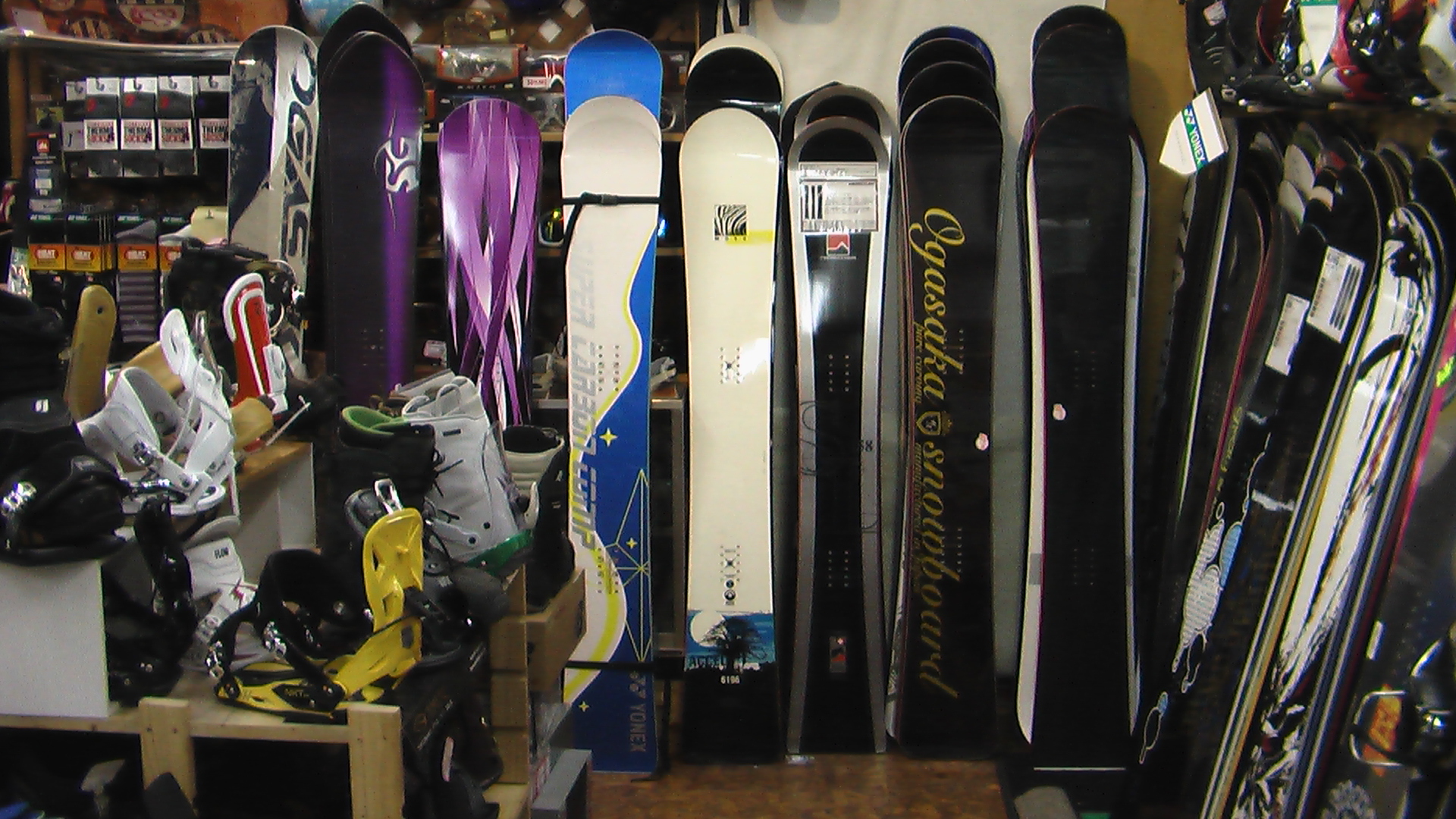 展示ボードやブーツ・ビンディングもほとんど納品されました。
