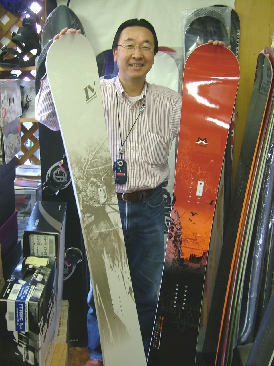 オガサカ・スノーボードの営業のS岡さんがご来店いただくと軽く2時間は、お話しています。