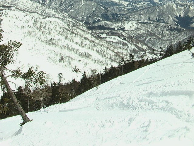 降りてきたのは こんな場所! 沢に落ちるオープンバーンでした。