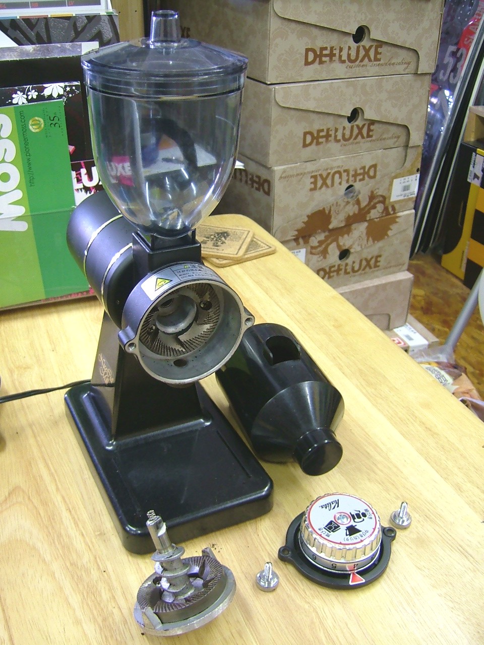古い豆のカスや油を取り除き、回転部にグリスアップしました。