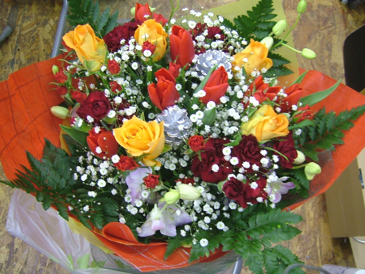お店の並びの花屋さんで頼んで、クリスマスバージョンの花束を用意しするのがやっと。
