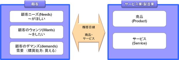 顧客の(ニーズ)<(ウォンツ)、(デマンズ) の3つを覚えましょう。 (←カタイかなぁ)